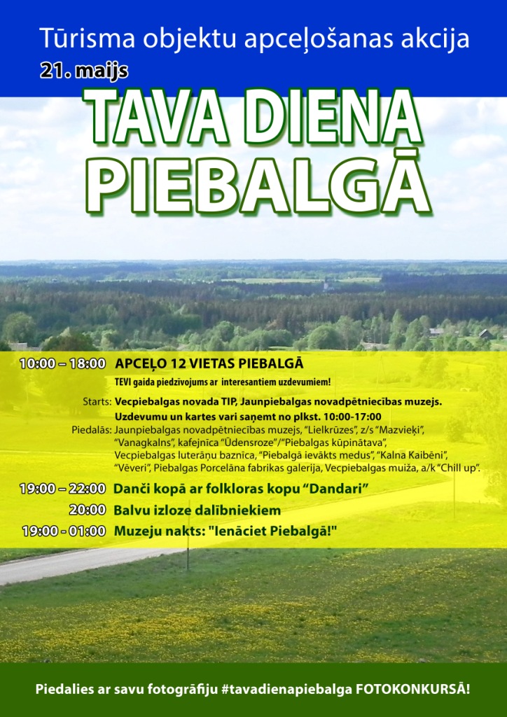 21. maijā norisināsies Vecpiebalgas un Jaunpiebalgas novadu tūrisma objektu apceļošanas akcija. Visas dienas garumā varēs apceļot 12 vietas Piebalgā, kurās gaidīs dažādi piedzīvojumi. Dalībnieku kartes ar uzdevumiem tiks izsniegtas Vecpiebalgas novada Tūrisma informācijas punktā (TIP) un Jaunpiebalgas novadpētniecības muzejā no 10.00–17.00.