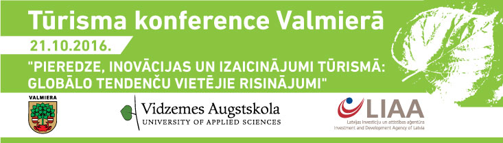 2016.gada 21.oktobrī Valmierā norisināsies starptautiska līmeņa konference “Pieredze, inovācijas un izaicinājumi tūrismā: globālo tendenču vietējie risinājumi”. Konferencē par tūrisma un viesmīlības nozarē aktuālām tēmām diskutēs daudzi starptautiski atzīti lektori no Eiropas, kā arī eksperti no Latvijas un tuvākajām kaimiņvalstīm.