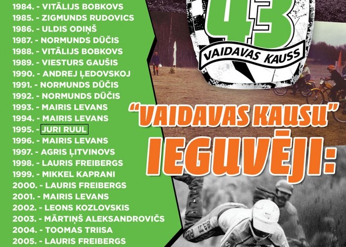 Kura sportista vārds šogad pievienosies garajam uzvarētāju sarakstam? Tas noskaidrosies svētdien, 22. maijā, kad sportisti metīs izaicinājumu grūtajai, bet interesantajai Apes mototrasei. Pirmais starts tiks dots plkst. 11.30. Sacensību nolikums un cita informācija – mājaslapā www.vaidavaskauss.lv