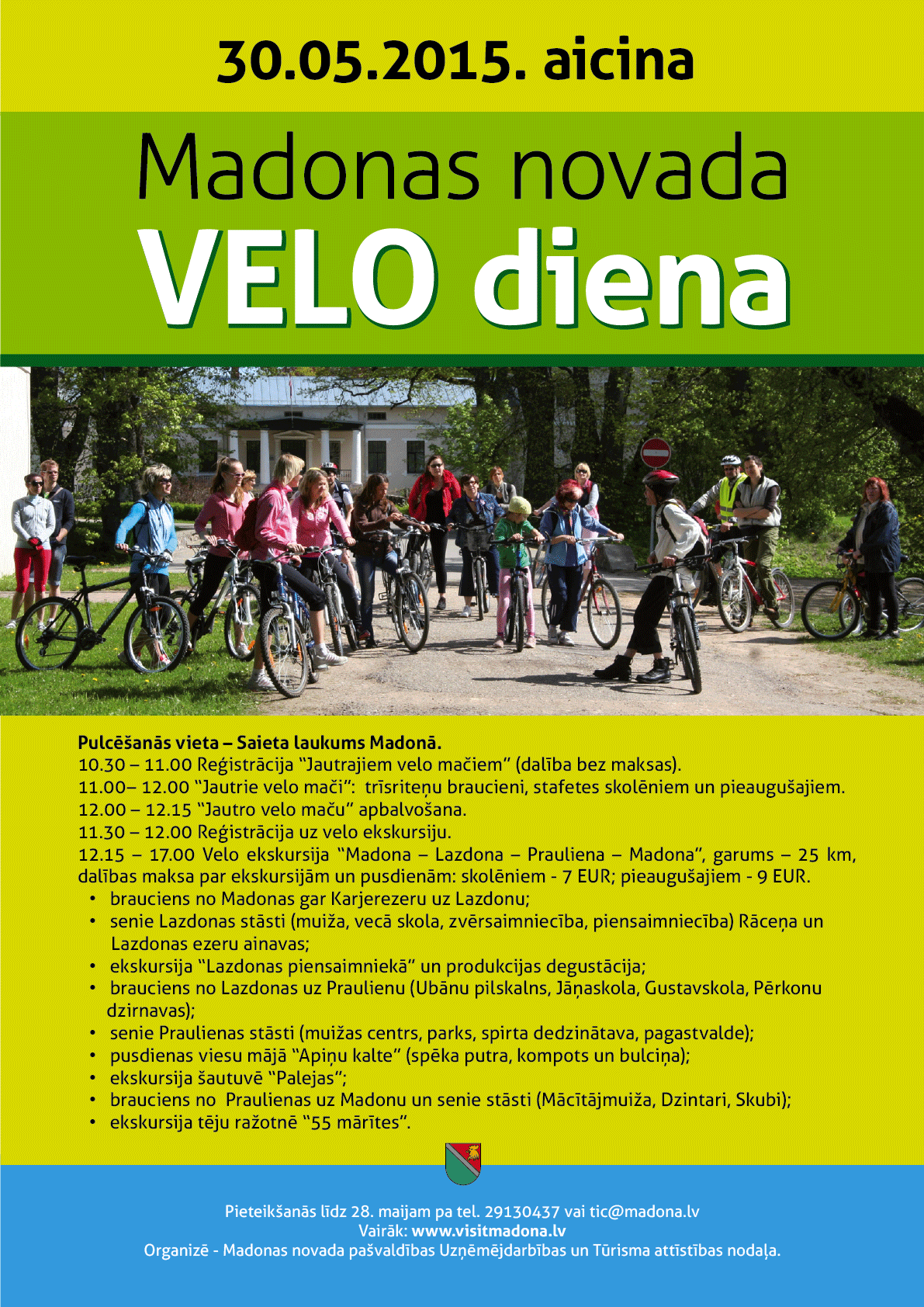 - 12.15 Uzruna velo ekskursijas “Madona – Lazdona – Prauliena – Madona” dalībniekiem un došanās ceļā.