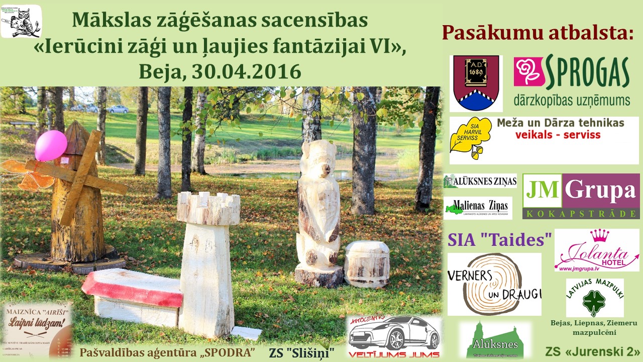 30. aprīlī Jaunalūksnes pagasta Bejā Alūksnes novadā notiks jau par tradīciju kļuvušās mākslas zāģēšanas sacensības - plenērs “Ierūcini zāģi un ļaujies fantāzijai”.