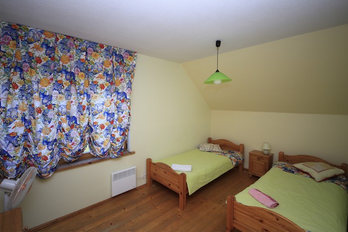 - Divstāvu dzīvojamajā mājā - 9 guļvietas, (iespēja izvietot papildus guļvietas par papildmaksu), virtuve*, duša*, 2 WC*, veļas mašīna, kamīns, 2.stāvā - elektriskā apkure.