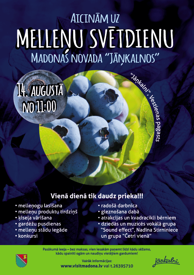 Lai visas idejas īstenotos, vēlēsim šai 14.augusta svētdienai sauli! Pasākumā ieeja ir bez maksas, vien iesakām līdzi paņemt kādu sēžamo, kādu spainīti ogām un naudiņu gardumiem. Uz tikšanos “Jāņkalnos”!