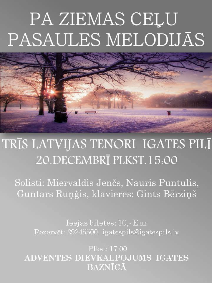 Igates pils aicina iepriecināt sevi un savus mīļos, apmeklējot Ziemassvētku noskaņu koncertu "Pa ziemas ceļu pasaules melodijās" 20.decembrī plkst.15:00. Ieejas maksa 10 Eur.