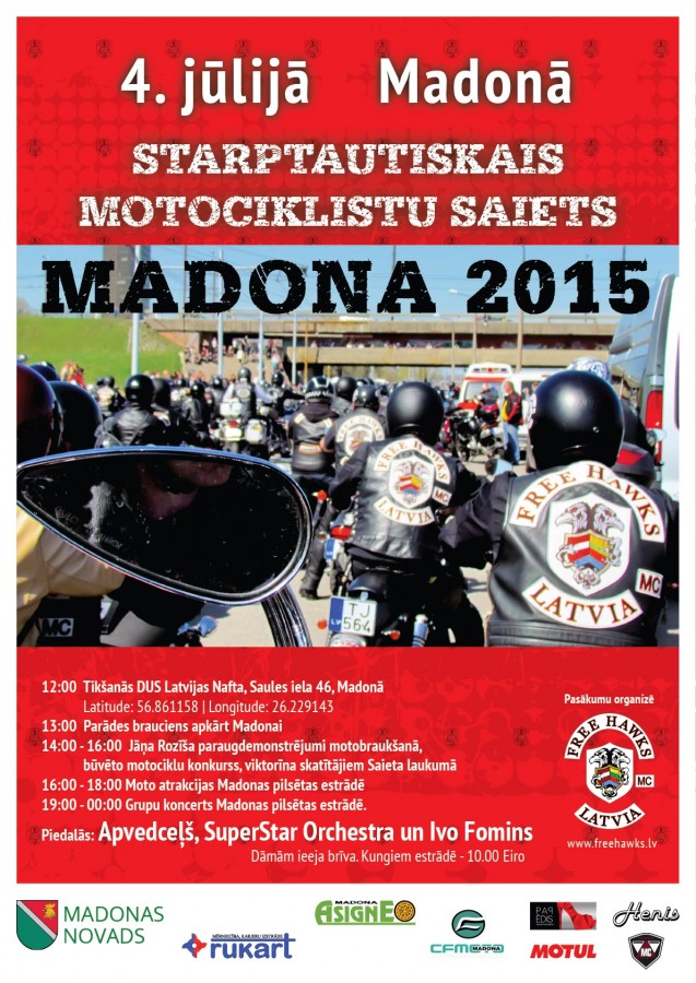 - 16:00-18:00 - moto atrakcijas Madonas pilsētas estrāde