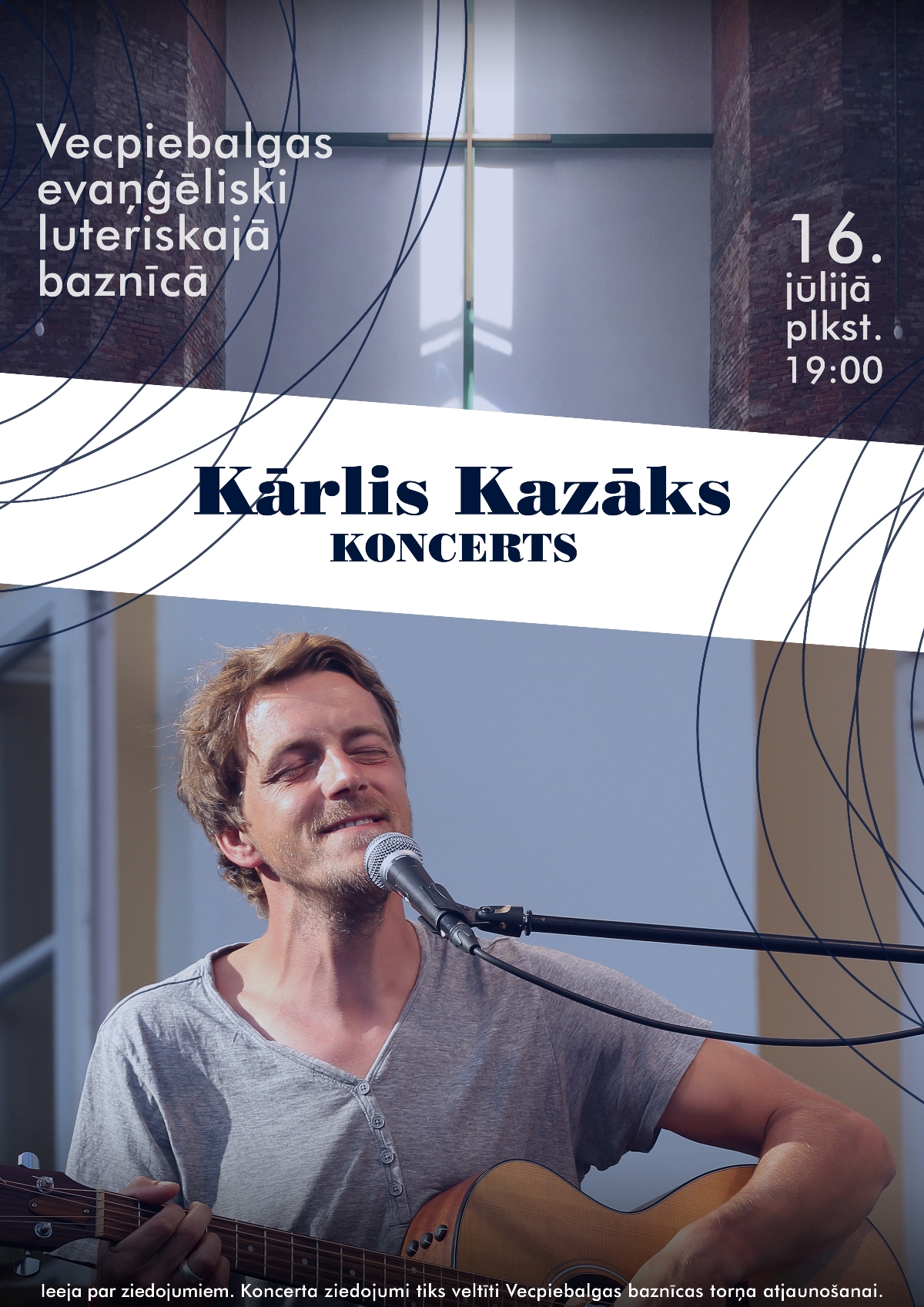 16. jūlijā plkst.19:00 Vecpiebalgas baznīcā notiks koncerts, kurā muzicēs pazīstamais mūziķis Kārlis Kazāks. Kārlis Kazāks ir dziesminieks, kurš biežāk sastopams ārpus galvaspilsētas un labiekārtotām koncertzālēm, izvēloties sastapt savu klausītāju attālākās un pat neierastās vietās.